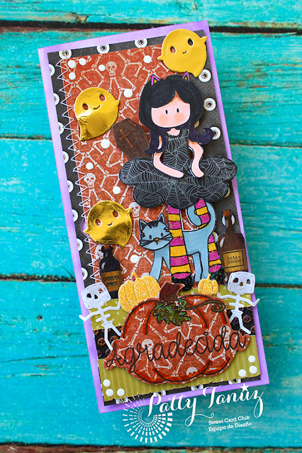 La calabaza y el "agradecida" también son sellitos de Garabattas!Celine ama a sus mascotas, así que la puse con su gatito bien coqueto jiji